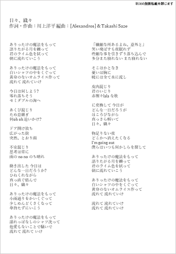 ■「日々、織々」歌詞