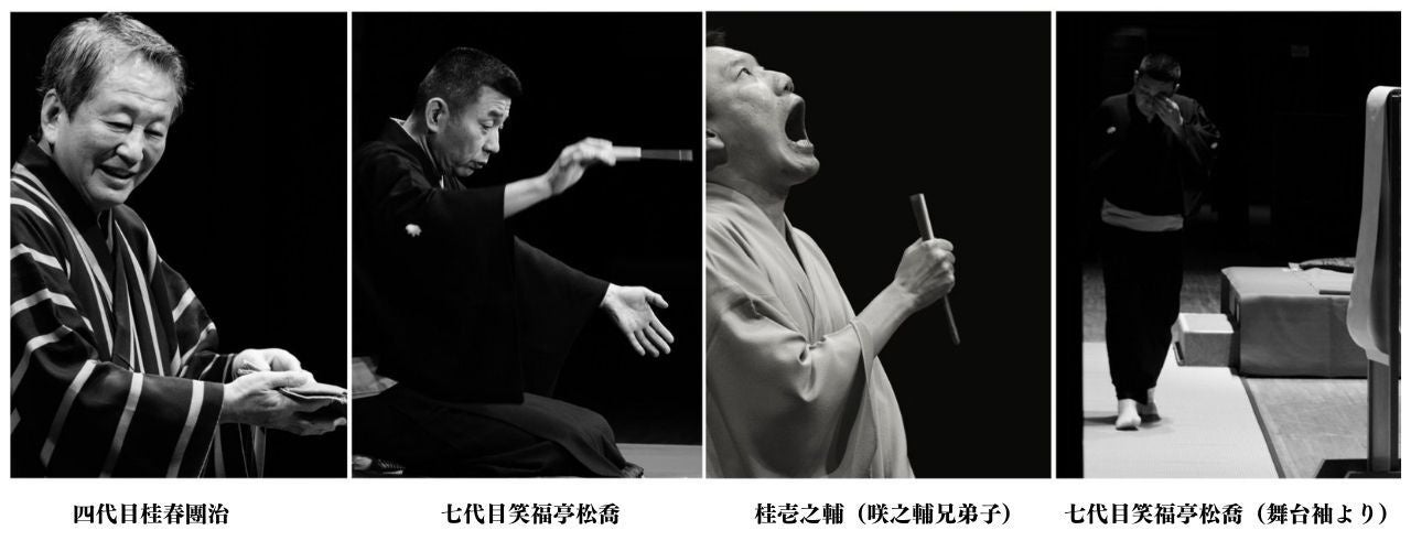 展示写真の中には、咲之輔の師匠である四代目桂春團治や昨年文化庁芸術祭大衆芸能部門大賞を受賞した笑福亭松喬などの高座写真、また落語家しか入ることのできない舞台袖、楽屋でしかみれない上方落語家の表情を捉えた作品をラインナップしております。また開催記念落語会と称してゲストを招いての落語会を開催期間中9日間連続開催致します。