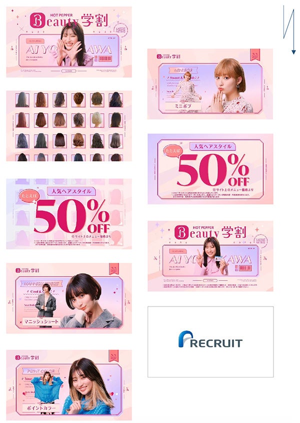 他にも、例えば「50%OFF」(※)でできるヘアスタイルの一例として、ウェーブボブや裾カラー、ウルフカットのモデルさんが登場。吉川さんは「えっ?」「うそ?」「やばっ?」と次々に登場する「50%OFF」でできるヘアスタイル例にテンションは上がりっぱなし。最後は「賢くおトクにかわいくなっちゃお!ホットペッパービューティー学割」と学生証を持ちながら決めポーズ。たくさんのかわいいヘアスタイルが登場し、今すぐヘアスタイルを変えに行きたくなるCMとなりました。