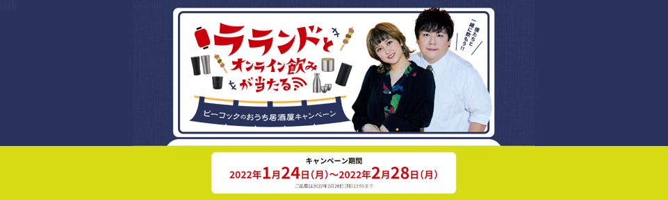 - ラランドとオンライン飲みが当たる『ピーコックのおうち居酒屋キャンペーン』概要