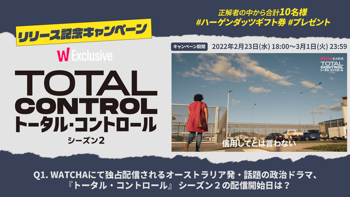 さらに『トータル・コントロール』シーズン2の配信を記念しWATCHA公式TwitterとInstagramにてプレゼントキャンペーンを実施!リリース記念プレゼントキャンペーンの詳細は下記の通りです。
