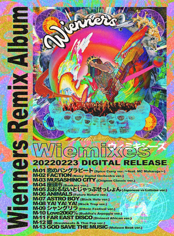 銀河系パンクバンド“Wienners”(ウィーナーズ)が、本日、2月23日に初のリミックスアルバム『Wiemixes』(ウィミキシーズ)を配信リリースした。