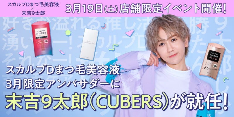 アンファー株式会社(本社:東京都千代田区、代表取締役社長:叶屋宏一 以下「アンファー」)のスカルプDまつ毛美容液 3 月限定アンバサダーに、末吉9太郎氏(CUBERS)が就任することが決定しました。アンバサダーに就任に伴い、2022 年 3 月 19 日(土)に東京・名古屋・大阪を 1 日で巡り、店舗イベント「9太郎が“推す“まつ毛美容液お渡し会」を開催いたします。