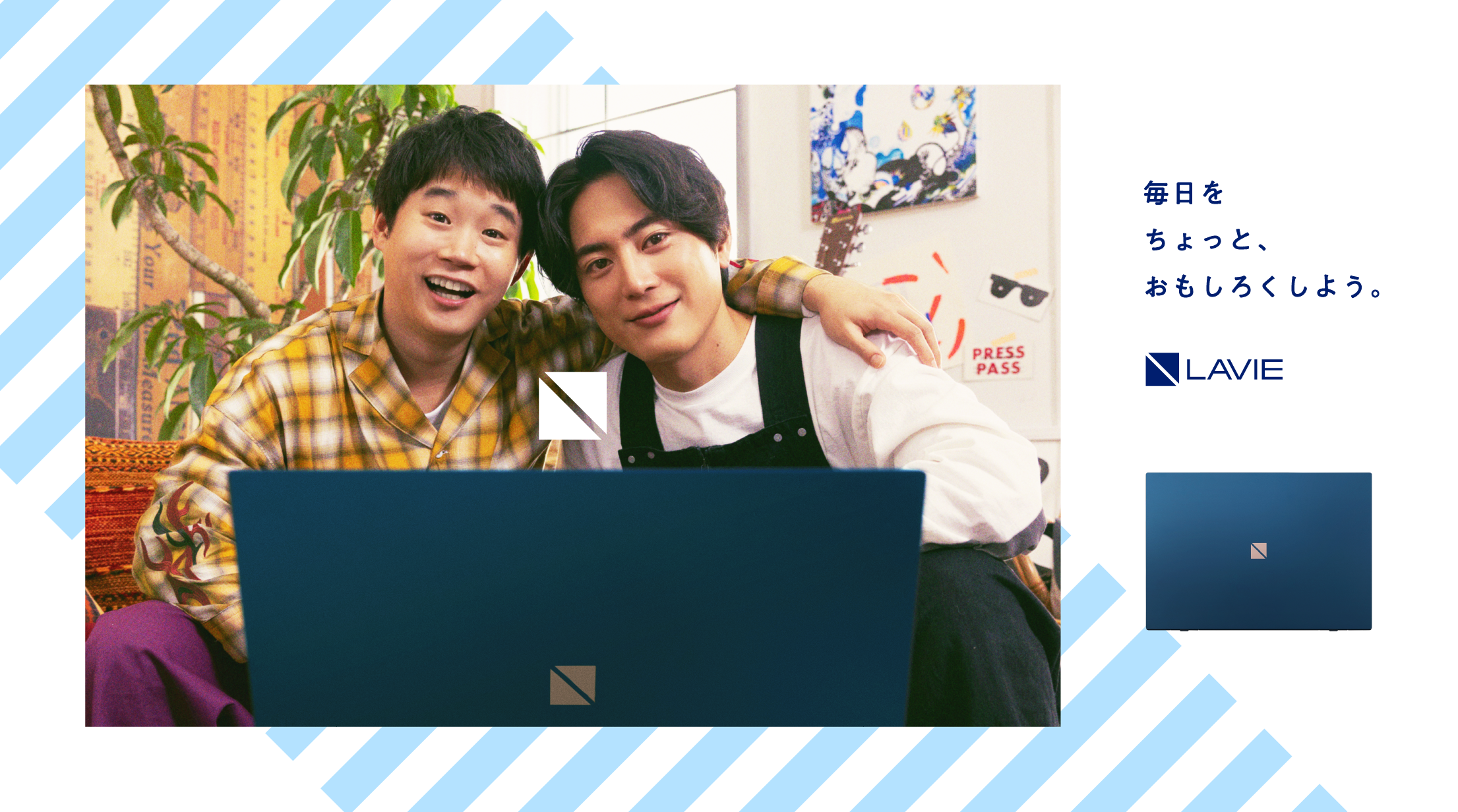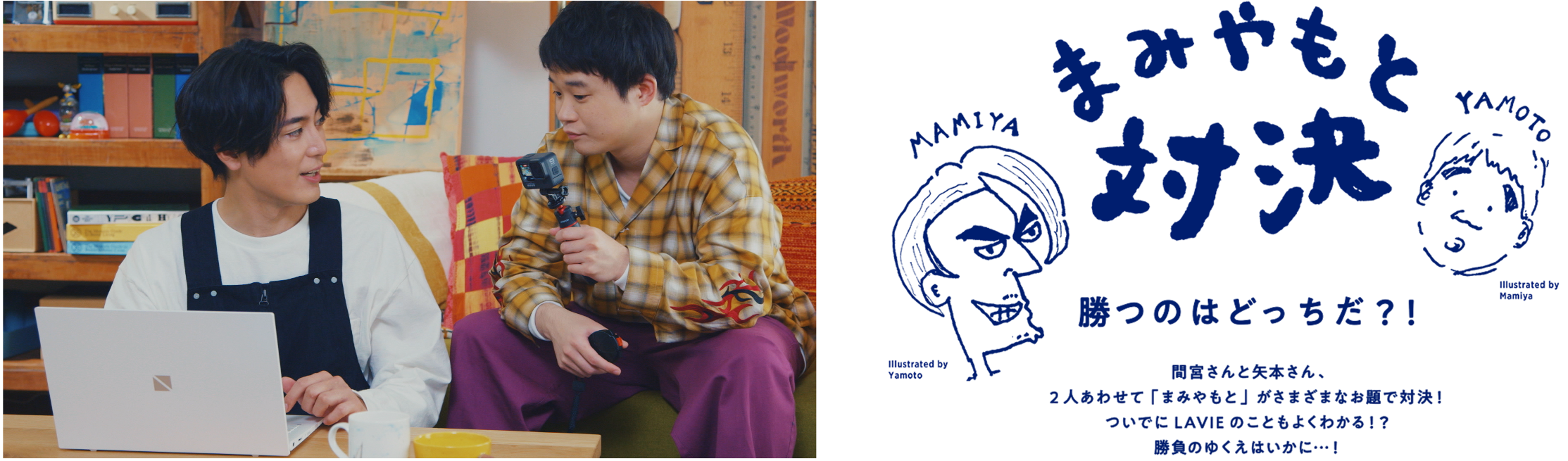 NECパーソナルコンピュータ株式会社(本社:東京都千代田区、代表取締役執行役員社長:デビット・ベネット、以下NECPC)は2022年2月25日(金)より俳優の間宮祥太朗さんと矢本悠馬さんの2人(通称“まみやもと”)を起用したLAVIE(ラヴィ)の新CMを放映開始いたします。