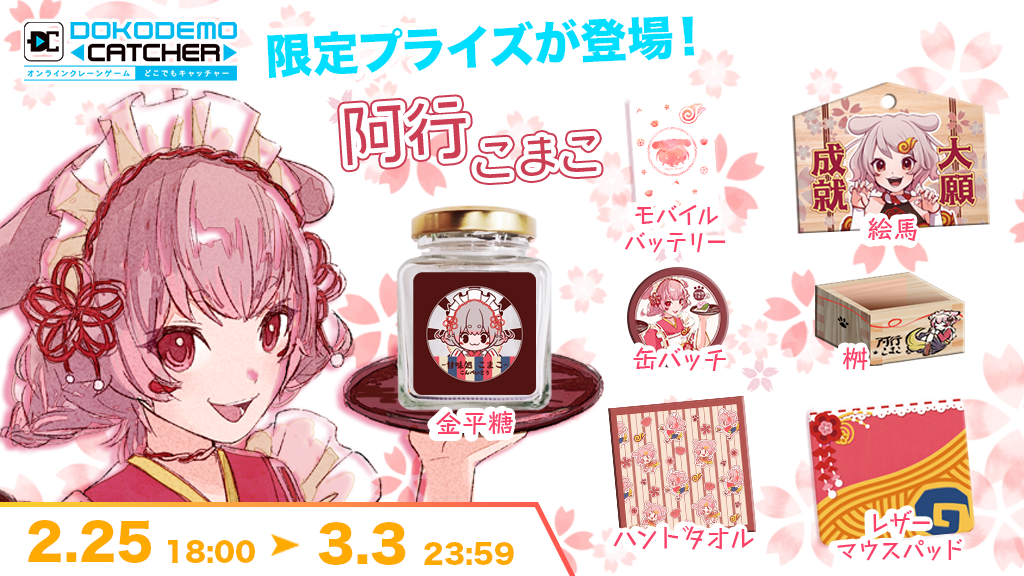 株式会社DC7(本社:京都府京都市 運営:大阪府大阪市)が運営するオンラインクレーンゲーム「どこでもキャッチャー」と、狛犬系Vtuber「阿行こまこ」さんとのコラボイベント開催をお知らせします。