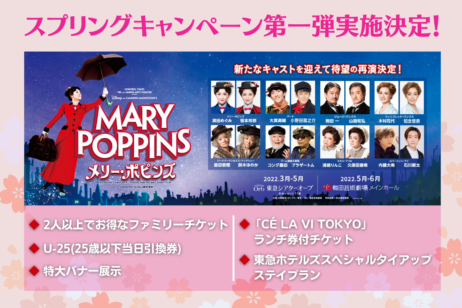 ミュージカル『メリー・ポピンズ』 スプリングキャンペーン第一弾実施決定!【ファミリー&U25チケット/ランチ券付チケット/東急ホテルズタイアップステイプランほか】