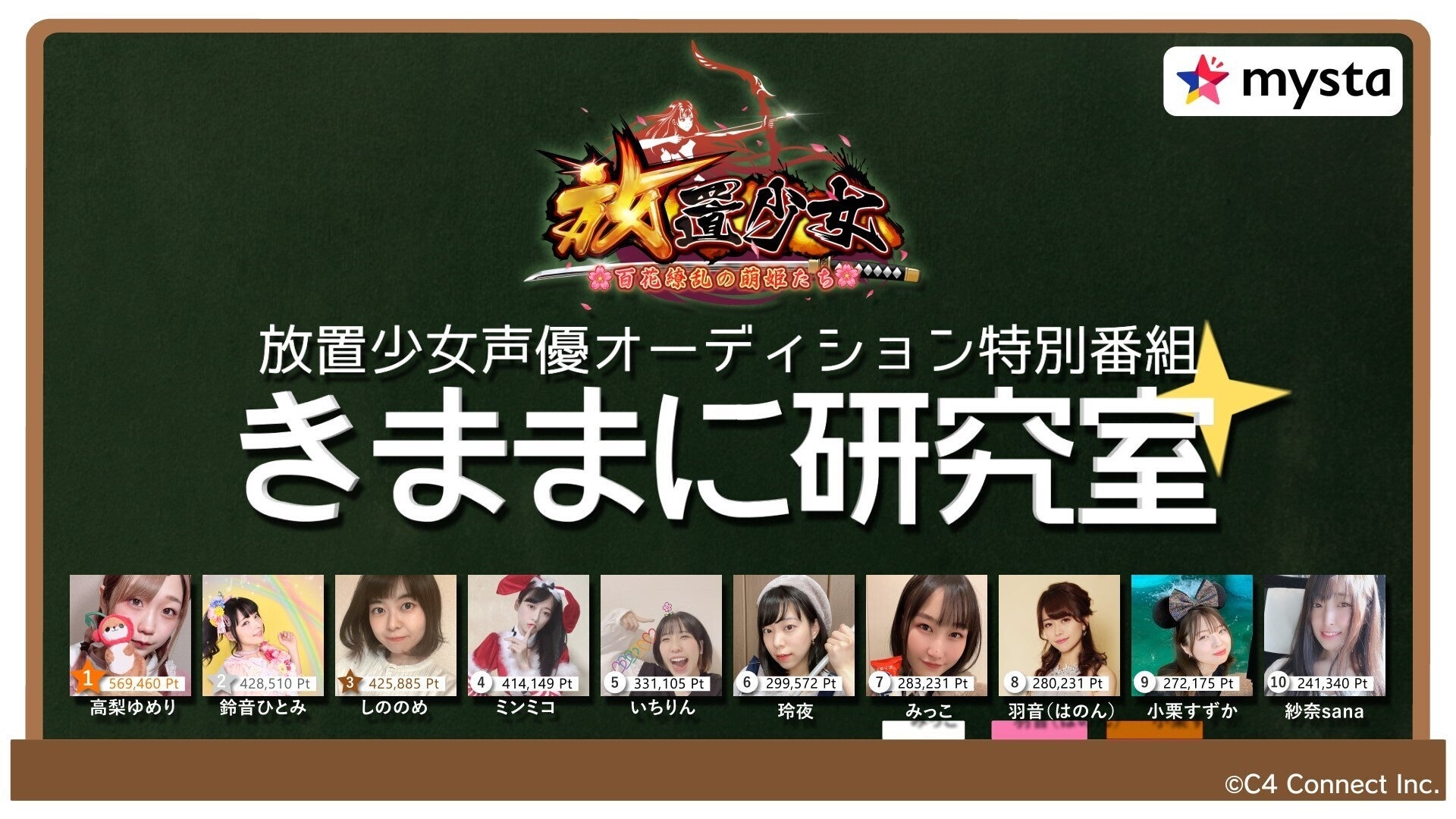 放置少女声優オーディション開催記念!スペシャル番組『きままに研究室』をGYAO!とmystaで配信!
