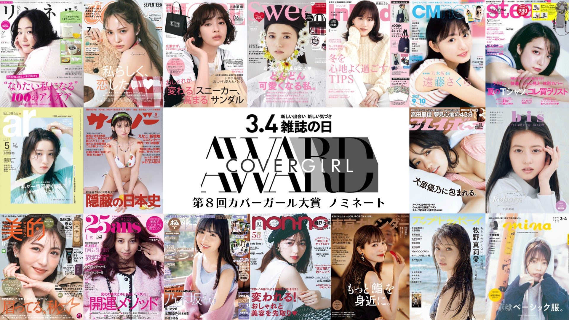 カバーガール大賞実行委員会(一般社団法人日本雑誌協会、株式会社富士山マガジンサービス、マガジンサミット、カバーガールTV)では、3月4日『雑誌の日』を記念して2022年3月4日に『第8回 カバーガール大賞』を発表いたします。大賞発表に先駆け、ノミネートされたファイナリスト45名を発表いたします。