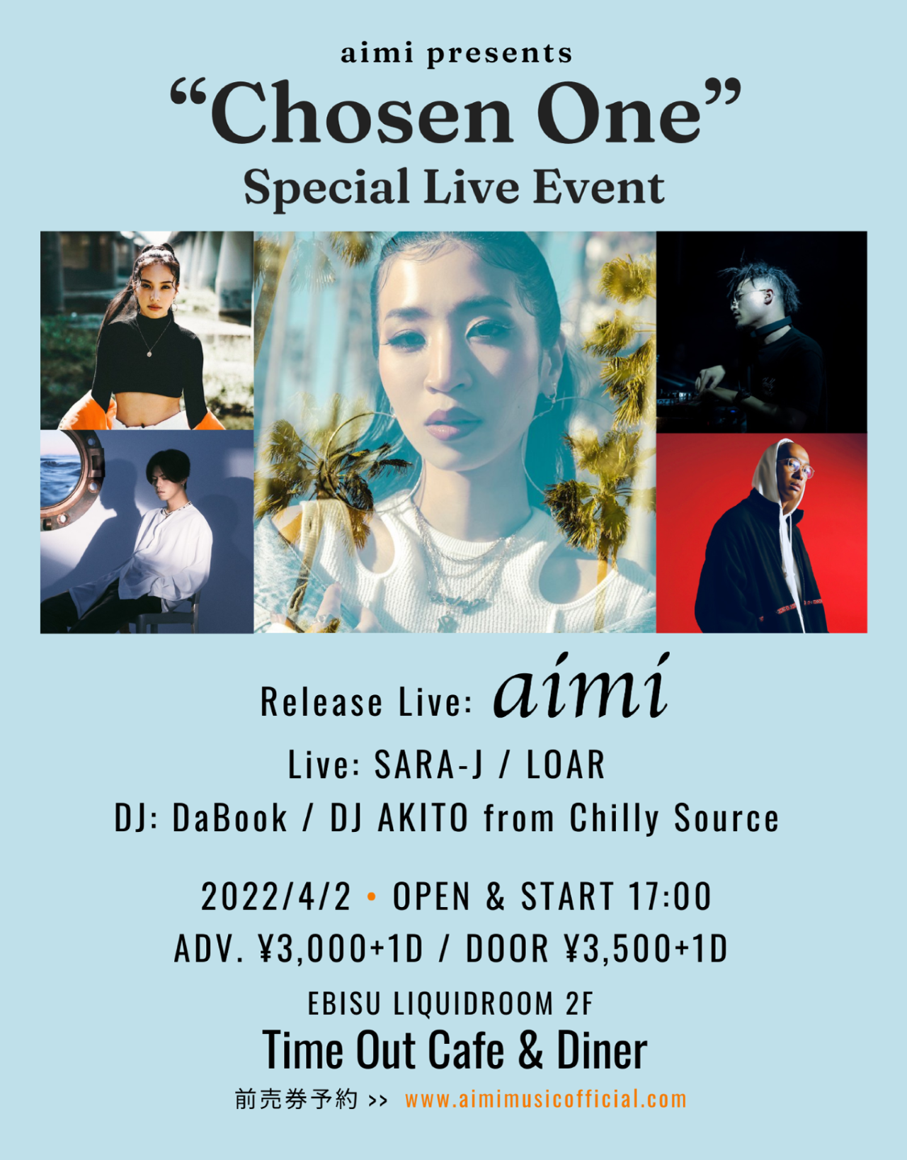 2月9日に新作「Chosen One」をリリースし、iTunes R&B/ソウルアルバムチャート初登場1位を獲得したR&Bシンガーaimi が、4月2日に自身初のリリースイベントを開催する。当日はaimiのリリースライブはもちろん、現行R&Bサウンドを体現する若手R&BアーティストSara-J、LOAR、またDJのDaBook、DJ AKITO(Chilly Source)がゲスト出演する。新型コロナウイルスの感染拡大防止のガイドラインに準じて、通常キャパシティ以下で開催される。現在、オフィシャルサイトにて前売券の予約受付中。