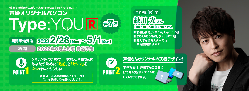 ![声優オリジナルパソコンのリバイバルシリーズに緑川光さんが登場!【Type:YOU[R] -タイプユーアール-】第7弾は2月28日よりスマッシュコアで受注開始!](https://entamerush.jp/wp-content/uploads/2022/02/2022-02-28_18-22-40_324125.jpeg)