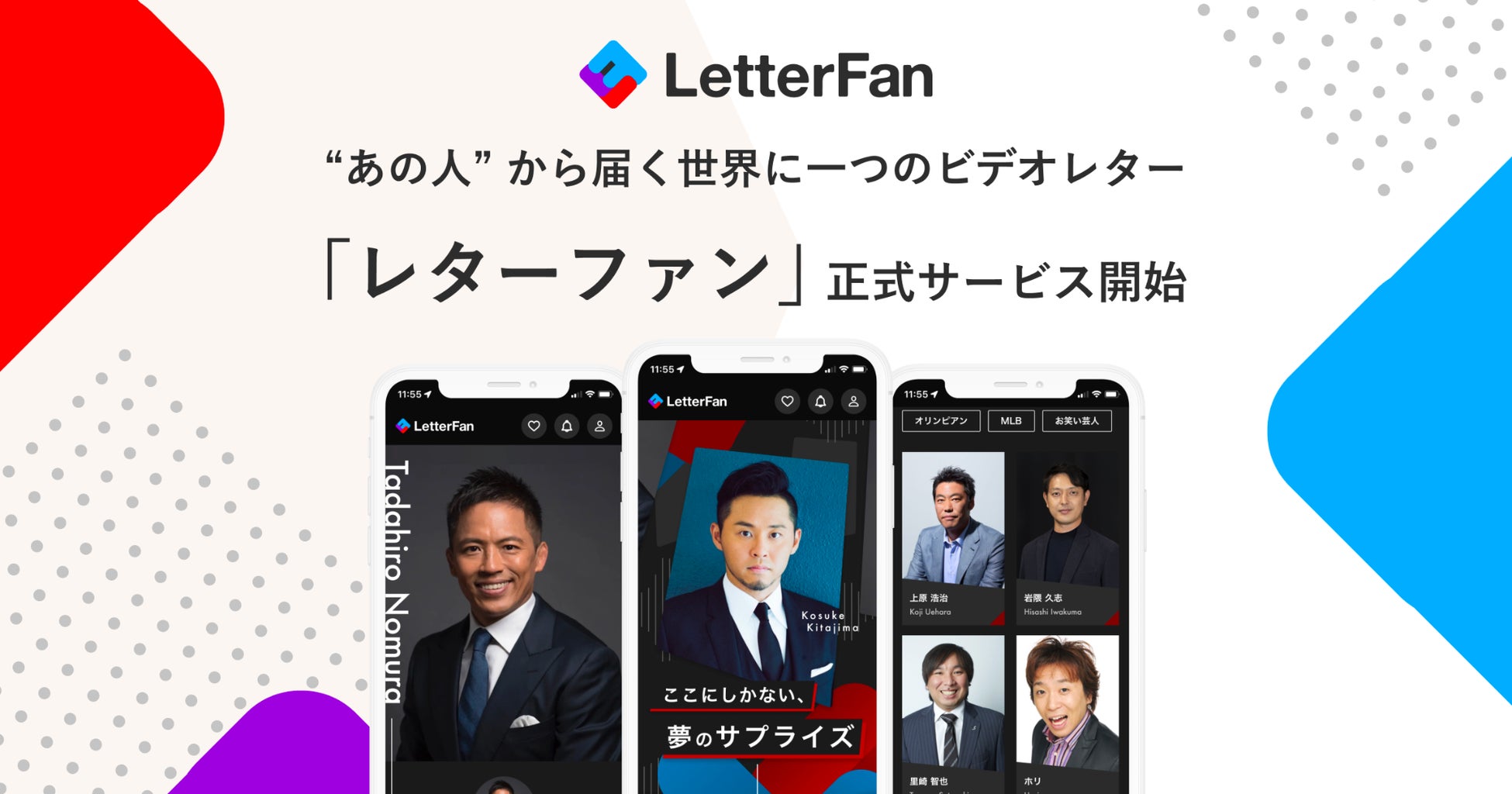 株式会社レターファンは、アスリートやお笑い芸人など、著名人からビデオメッセージがあなただけに届く「レターファン」を提供しています。結婚式や誕生日、記念日等のサプライズギフトとして個人に使われており、サービスサイトからリクエストができます。また著名人側にとっても、ビデオメッセージをアプリで簡単に撮影・送信ができる上、肖像権・著作権がテクノロジーで保護されているため安心して利用されているサービスです。