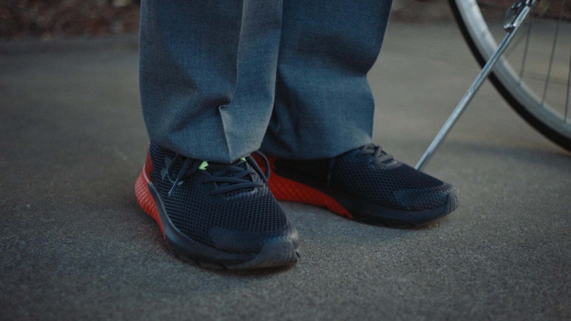 チアリーディングの朝練のため自転車で登校した桜田ひよりさん。まだ人が少ない中、自転車を停めた駐輪場には朝練のために登校していた野球部員の男性が。「来週の試合に勝てば全校応援だね」と話しかけた桜田さんに、野球部員が「誰か応援しているの?」と思い切って聞く。急な質問にびっくりする桜田さんが「うん…」と思わず本音を。思わぬ反応に野球部員は先輩か1年か探りを入れるが違う様子。しばらく沈黙が続くと、そばで話を聞いている園芸部員もそわそわし始める。沈黙に耐え切れない野球部員から「え…何この沈黙。」と切り出すと、桜田ひよりさんが「来週の試合に勝ったら教える!」とその場からダッシュで去っていく。その後、部活の朝練を頑張る桜田ひよりさんと野球部員の足元には、UA CHAEGED ROGUE 3が…。2人の今後が気になる甘酸っぱい展開になっています。学生ならではの早朝に起こる胸キュンストーリーをUA CHAEGED ROGUE 3を履いて足元でも表現している桜田ひよりさんに注目です!