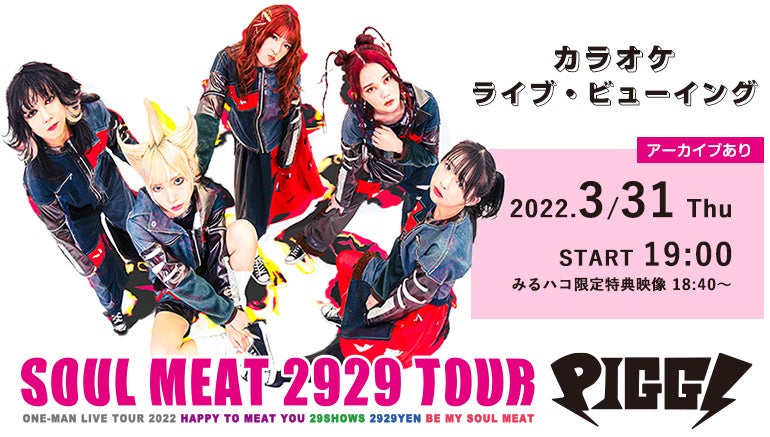 カラオケルームで観て楽しめる多彩なコンテンツをお届けするJOYSOUNDの「みるハコ」では、元BiSのプー・ルイ率いるアイドルグループ「PIGGS」史上最大規模の全国ツアー「SOUL MEAT 2929 TOUR」の東京公演の模様に「みるハコ」限定特典映像を加え、3月31日(木)18時40分から、全国のカラオケ店舗にライブ・ビューイング、さらに後日アーカイブ配信を実施することを決定しました。さらに、直筆サイン色紙が当たるキャンペーンも同時開催します。