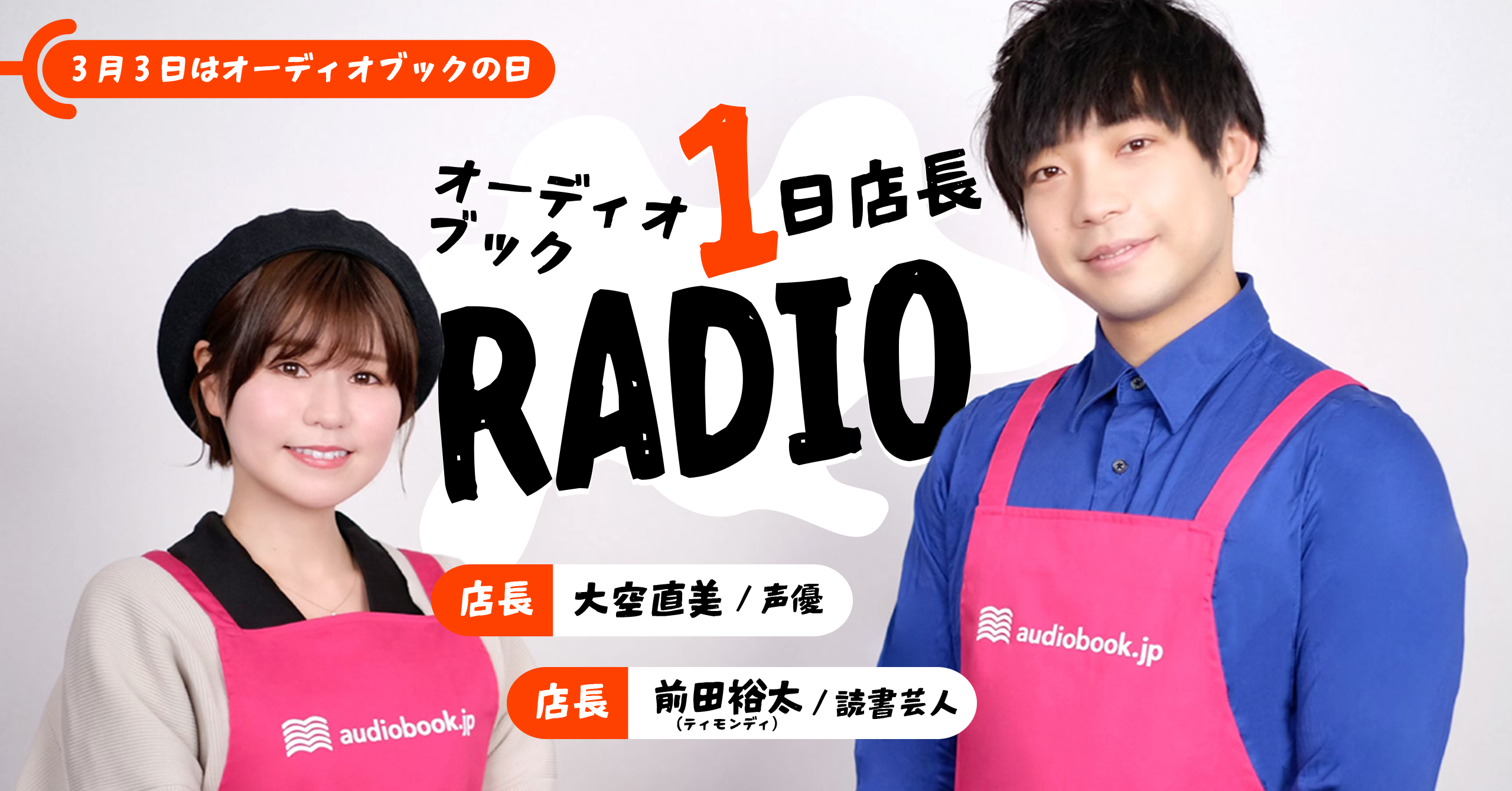 3月3日は、「オーディオブックの日」です。株式会社オトバンク( 本社:東京都文京区、代表取締役社長:久保田裕也、以下「オトバンク」)はこれを記念し、ティモンディの前田裕太さんと大空直美さんがオーディオブック1日店長に就任することを発表します。お2人が選書したおすすめオーディオブックを「audiobook.jp」トップページで紹介するほか、選書作品について熱く語り合う特別音声番組「オーディオブック1日店長RADIO」を「audiobook.jp」にて配信します。