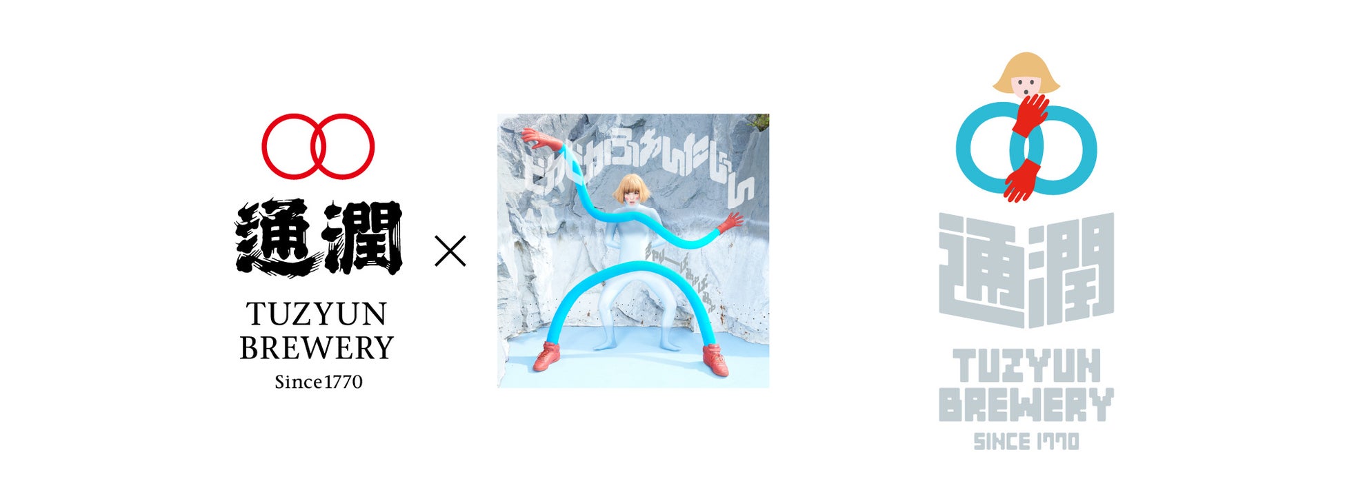 熊本では、山都町の観光拠点である国指定重要文化財「通潤橋」に名前の由来を持ち、2016年4月の熊本地震被災から地道に復興を成し遂げ、今年創業252年を迎えた「通潤酒造」とのコラボレーションが実現。そして、パートナー企業ロゴをリメイクする「コラボロゴ」企画では、2014年にリリースされた3枚目のオリジナルアルバム「ピカピカふぁんたじん」の初回限定盤Aのクリエイティブをオマージュにデザインされた。水色のチューブのような腕と赤い手袋が、通潤酒造の円が重なったロゴマークをキャッチーに再現している。