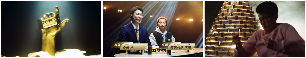 対するは、日清シスコ マーケティング所属 小夏 静子(こなつ しずこ)選手(※架空のキャラクター)。一部のお客様の声から開催に至ったという本大会に、解説を担当する勅使川原さんも「ほんの一部なのに、開催しちゃったんすね!?パないすね!?」と驚愕。会場の緊張感が高まる中、「SET!COCONUT SABLE!!OPEN!!」というアナウンスを合図に、両者一気に小分けパックを開封します。
