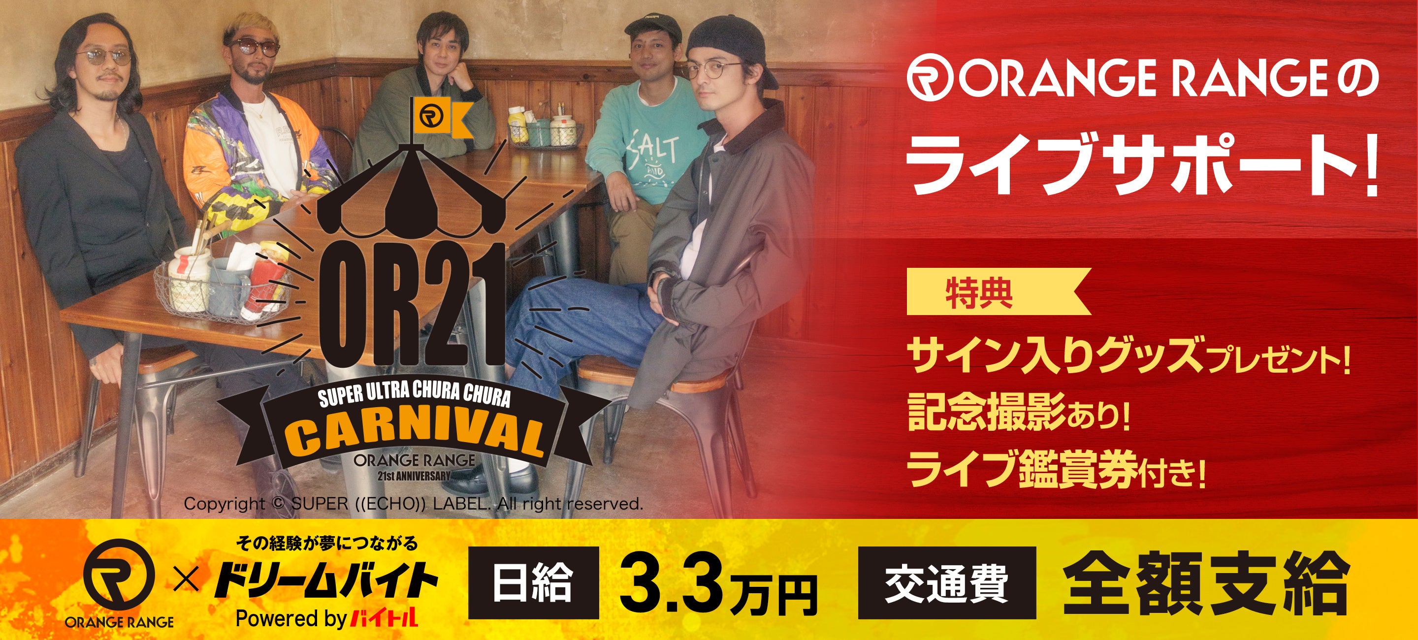 ディップ株式会社(以下「当社」)は、『その経験が夢につながる』をコンセプトとした「ドリームバイト」の新企画として、2022年5月15日(日)に開催される、『ORANGE RANGE ㊗21周年! スーパーウルトラちゅらちゅらカーニバル』の神奈川・ぴあアリーナMM公演をサポートするアルバイトを募集開始しました。