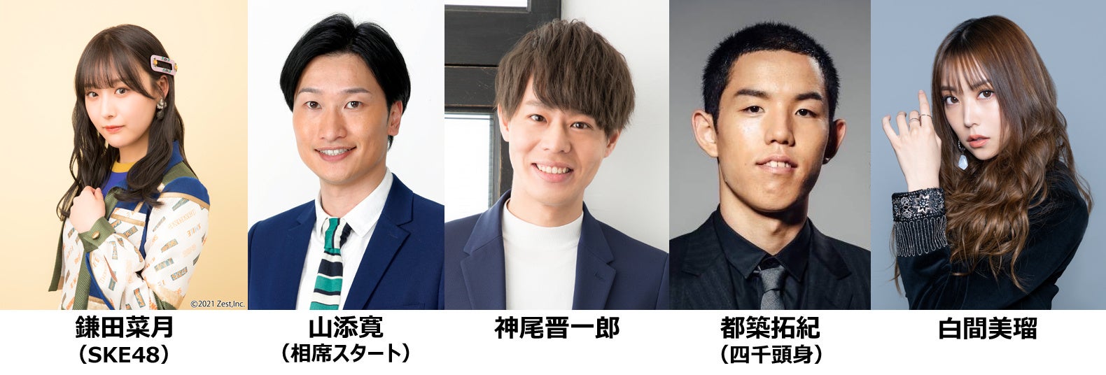 出演者:鎌田菜月(SKE48)(月)、山添寛(相席スタート)(火)、神尾晋一郎(水)、都築拓紀(四千頭身)(木)、白間美瑠(元NMB48)(金)