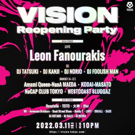 DJ陣にはVISIONでお馴染みのDJ TATSUKI 、DJ KANJI 、DJ NORIO 、DJ Foolishmanがフロアを盛り上げる!