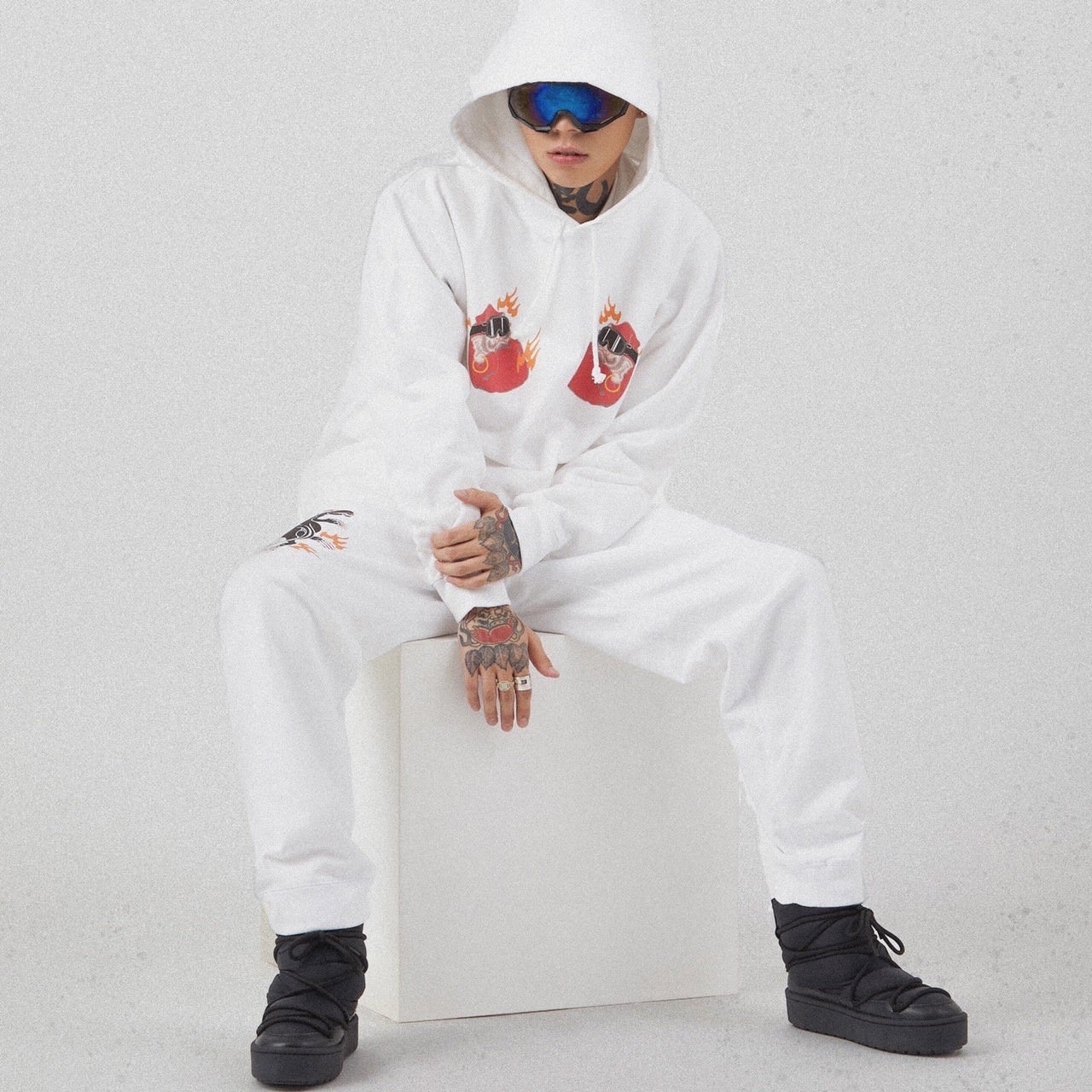 ファッションカルチャーとしてのKANGOLとweekdudusの世界観主義思考が混じり合う表現で、まさにそれらをシンプルに濃縮した自信作に仕上がっています。特にアートには拘り全て、weekdudusさんの全身に入っているタトゥーアートとKANGOLのアイコンが混じり合うコレクションになっています。