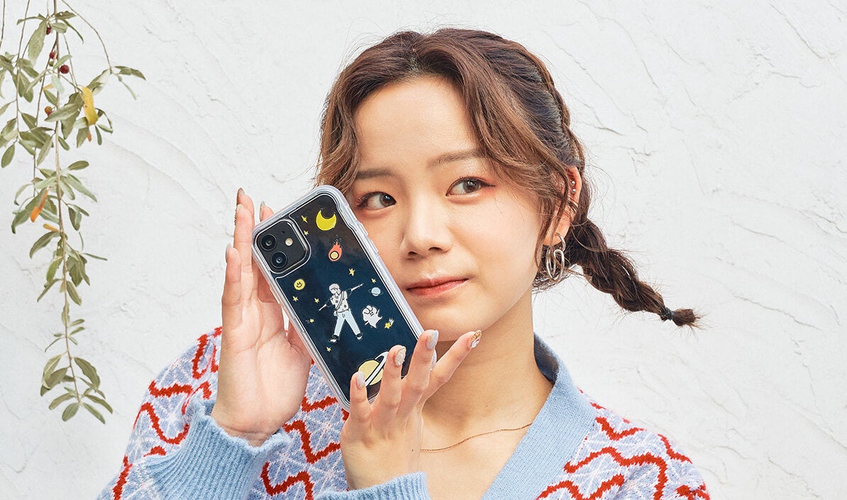 大人っぽい雰囲気のMizukiですが、SNSでは知ることのできないお茶目な一面をケースで表現しました。惑星やニコちゃんマークなど男性でも使いやすいポップなモチーフがポイントです。