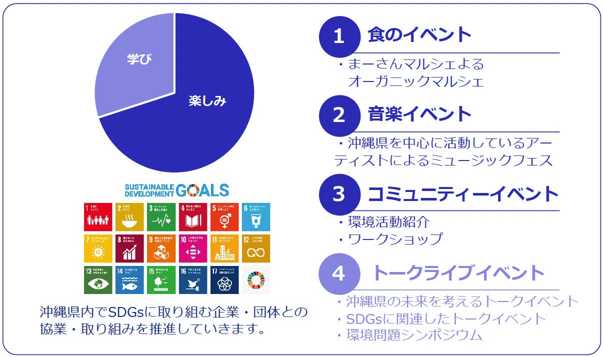 ・沖縄県及び県内企業のSDGs取り組み紹介コーナー、ワークショップ開催。EV車両展示ほか。