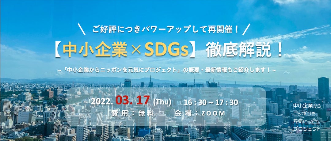 山下 佳介、以下「中小企業のチカラ」)( https://nippon-smes-project.com/utm_source=pr&utm_medium=prtimes_0308 )3月17日(木)に「中小企業とSDGs」というテーマでWebセミナーを開催いたします。