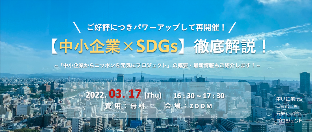 山下 佳介、以下「中小企業のチカラ」)( https://nippon-smes-project.com/utm_source=pr&utm_medium=prtimes_0308 )3月17日(木)に「中小企業とSDGs」というテーマでWebセミナーを開催いたします。