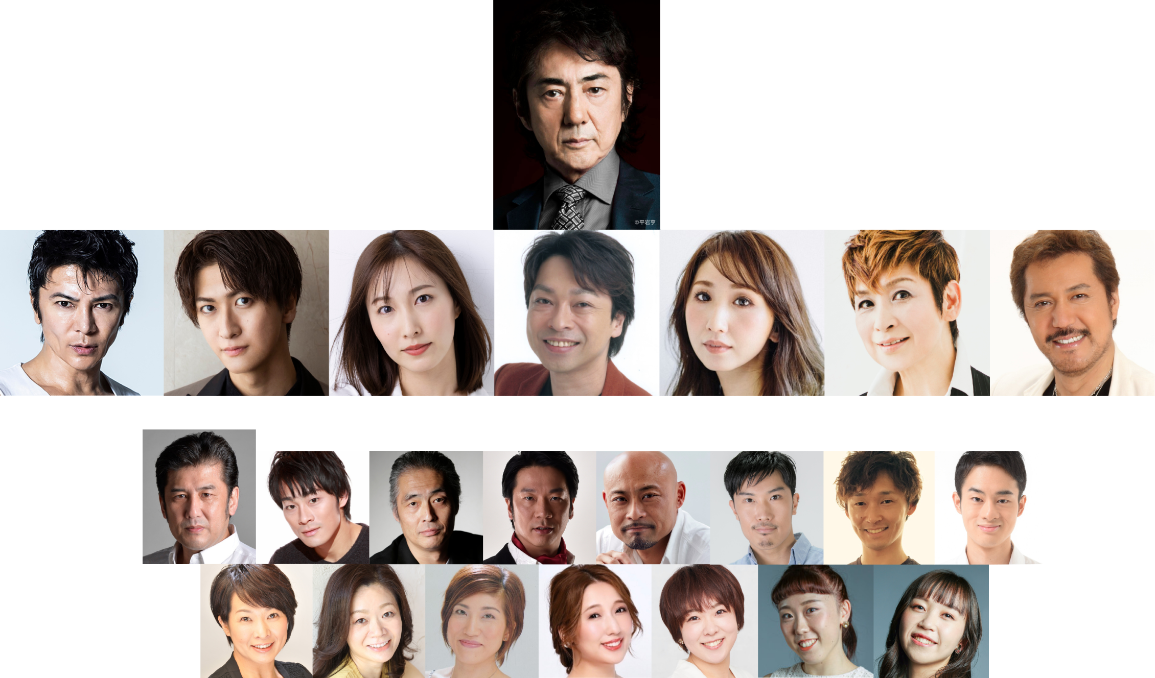 2段目左より)武田真治、相葉裕樹、実咲凜音、安崎 求、愛原実花、今 陽子、今井清隆