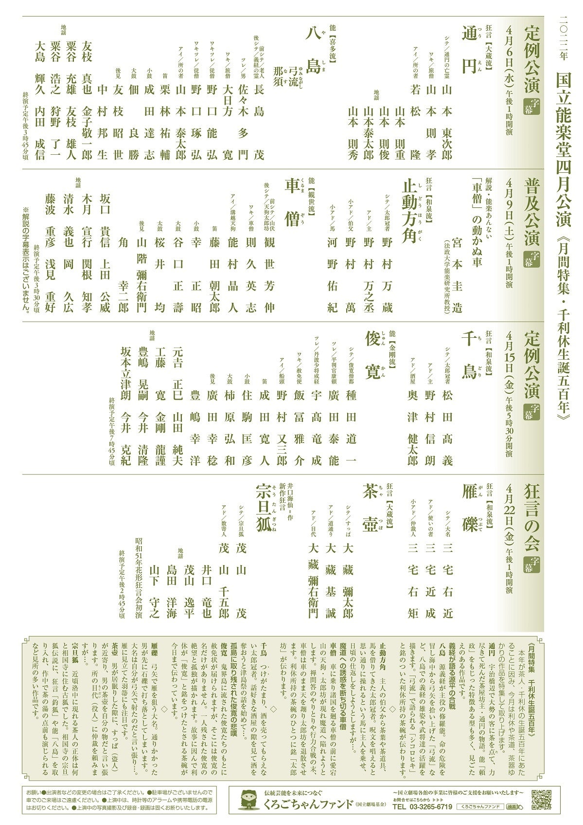 4月定例公演 『通円・八島』 2022年4月6日 (水) 12:00開場/13:00開演