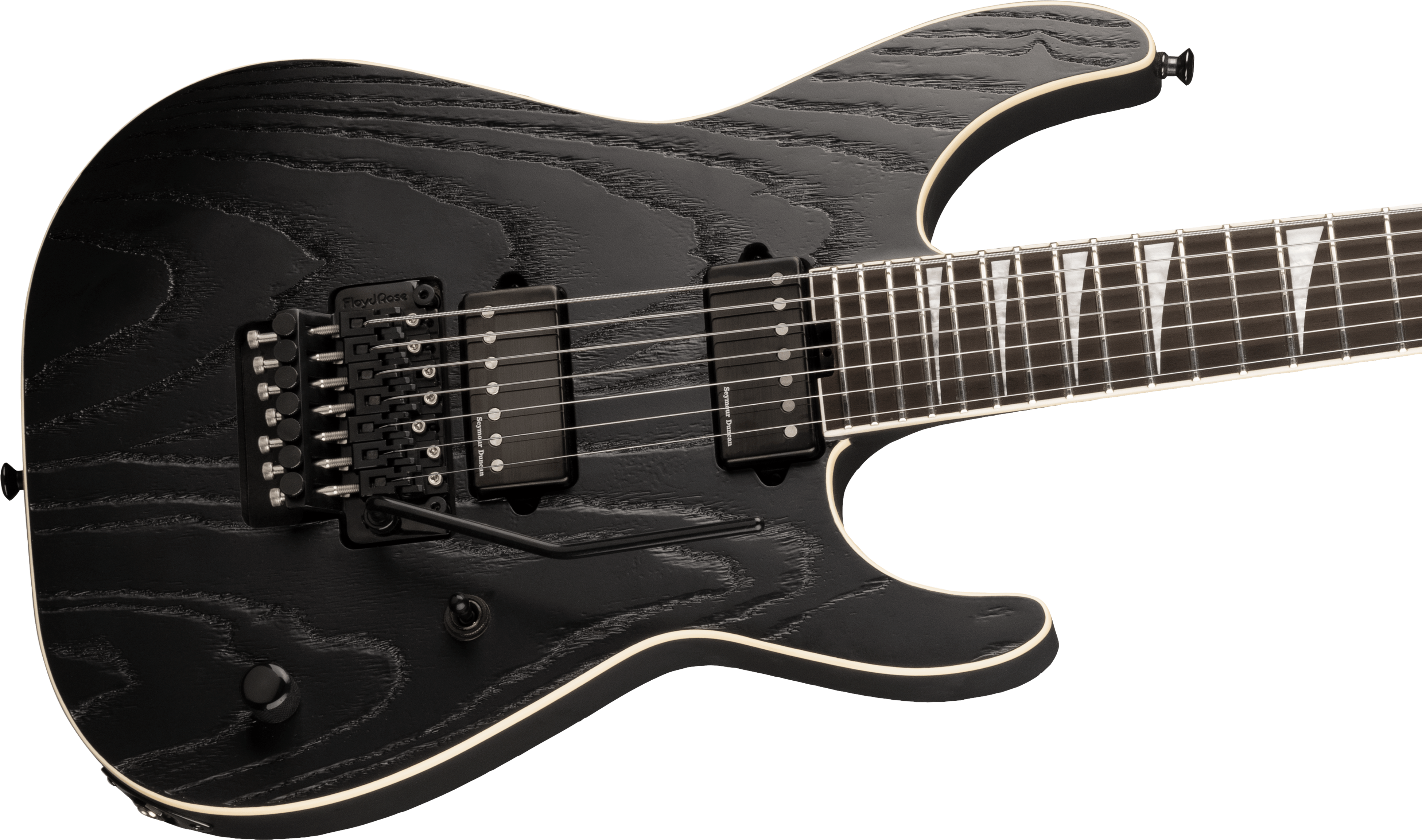 このシグネイチャーモデルは、メタルを演奏するための最適なギター要素に関するジェフの深い洞察を反映して作られています。7弦のフレットボードで完璧なイントネーションを実現するには26.5インチスケールが理想であることが彼の長年の経験が導いた選択の一つです。グラファイトで補強されたスルーボディのネックと12~16インチコンパウンドラジアスのエボニー指板は、軽快で巧みなプレイを可能にします。Seymour Duncan Jeff Loomis Signature Blackoutsピックアップはあらゆるミックスに埋もれない芯のあるトーンを提供し、Floyd Rose 1500 Seriesダブルロッキングトレモロは過激なアーミングにも応えられます。ネックのLuminlay®サイドドットで暗いステージでもフレッポジショントを見失うことなく、サテンブラックの仕上げとサンドブラストトップは圧倒的な存在感をもたらします。