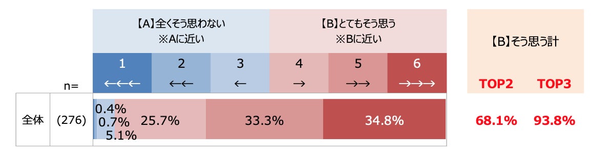 小児・AYA世代のがんについて関心が高まったと回答した人はTOP3【4-6と回答】94%。