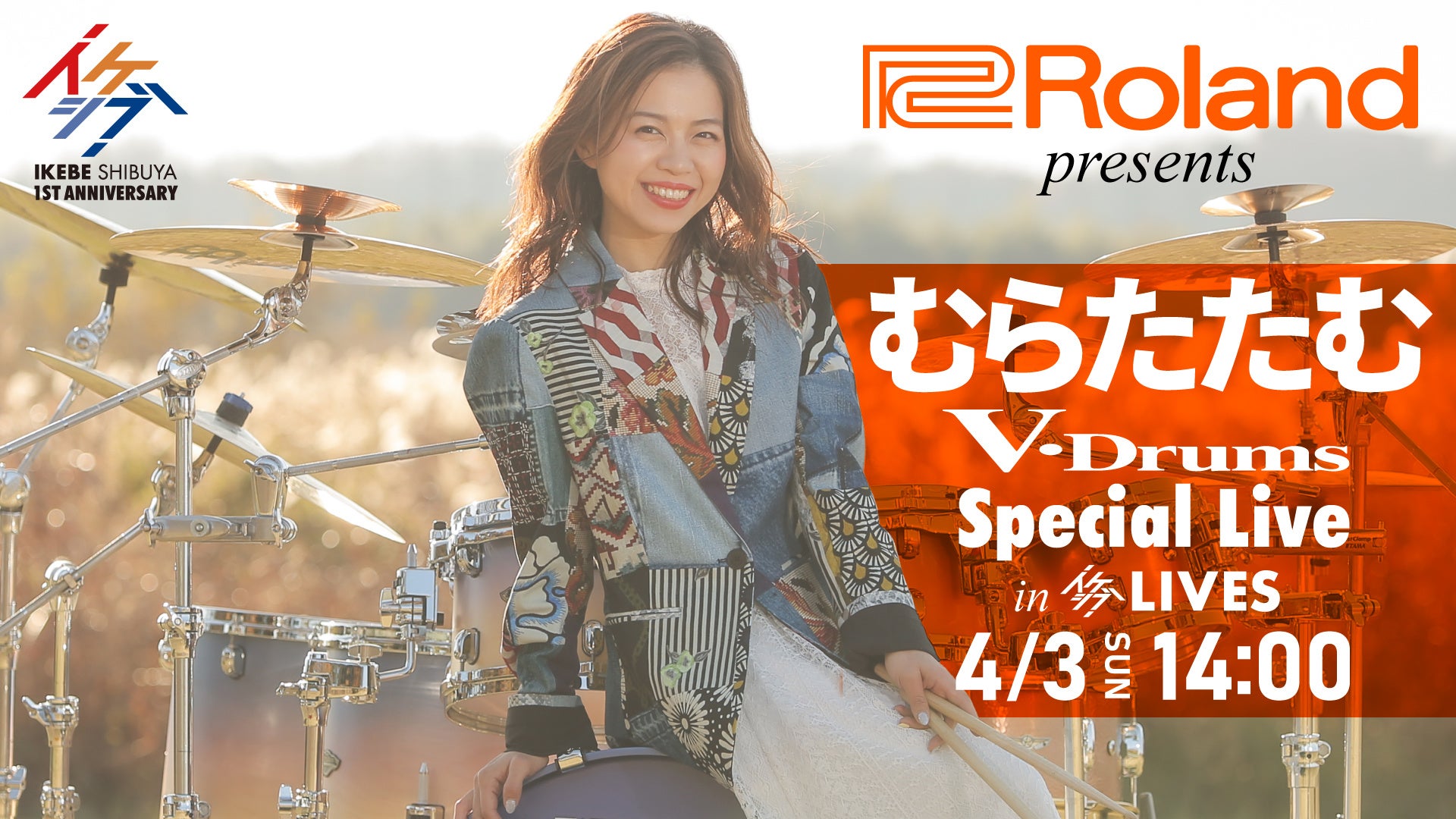 YouTubeのドラム演奏動画で、激しい曲を笑顔で叩くギャップにハマる視聴者が続出し、総再生回数6200万回、登録者数21万人(2022年2月現在)を超えるドラマー・むらたたむさんが渋谷旗艦店イケシブ(IKEBE SHIBUYA)に降臨!NEMOPHILAでの精力的な活動や忙しい子育ての間を縫い、イケシブLIVESにてRolandが誇る電子ドラムV-Drumsのフラグシップモデル「VAD706」とイケベ専売モデル「VAD103」、サンプリングパッド「SPD-SX」を使用したスペシャル・ライブを開催いたします。 さらに当日は会場にてV-Drumsに関するお得なご案内があるかも…?