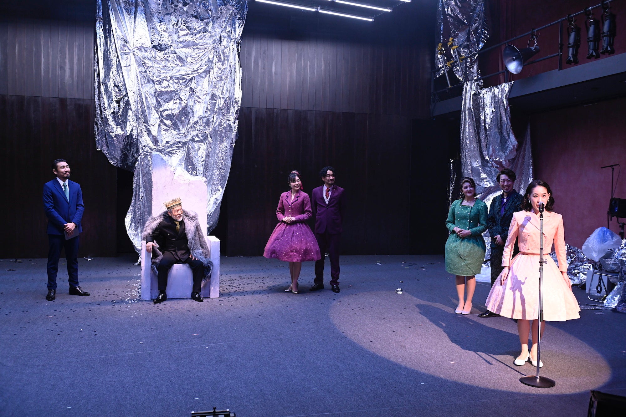 シェイクスピア劇を現代の視点で捉えた演出に定評のある木村龍之介らしい、“まさに今、世界で起こっていること”を想起せずにはいられないプロローグを経て、本編はスタート。リア王の宮殿・大広間に集まった人々が談笑し、場内の空気は先ほどとは打って変わって和やかだ。