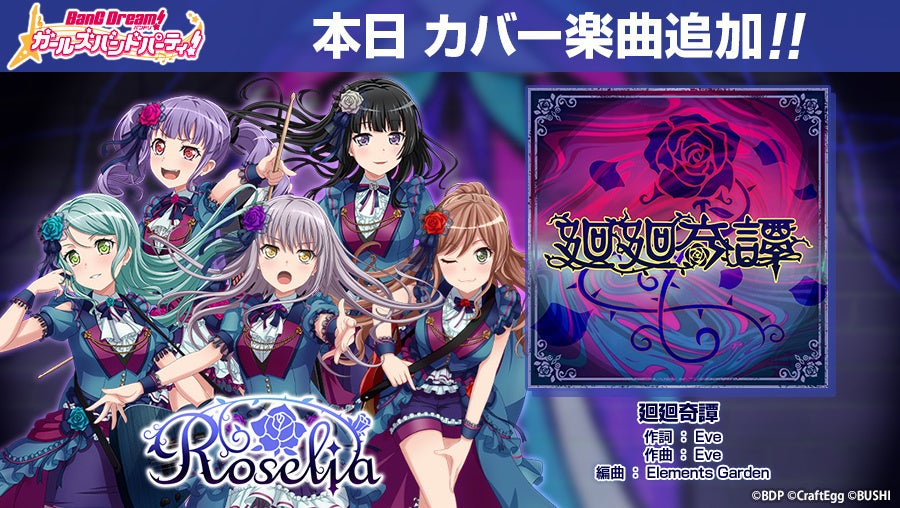 3月12日(土)0時より、Eveさんとのタイアップを記念し、Roseliaが歌うカバー楽曲『廻廻奇譚』をゲーム内へ追加いたしました。