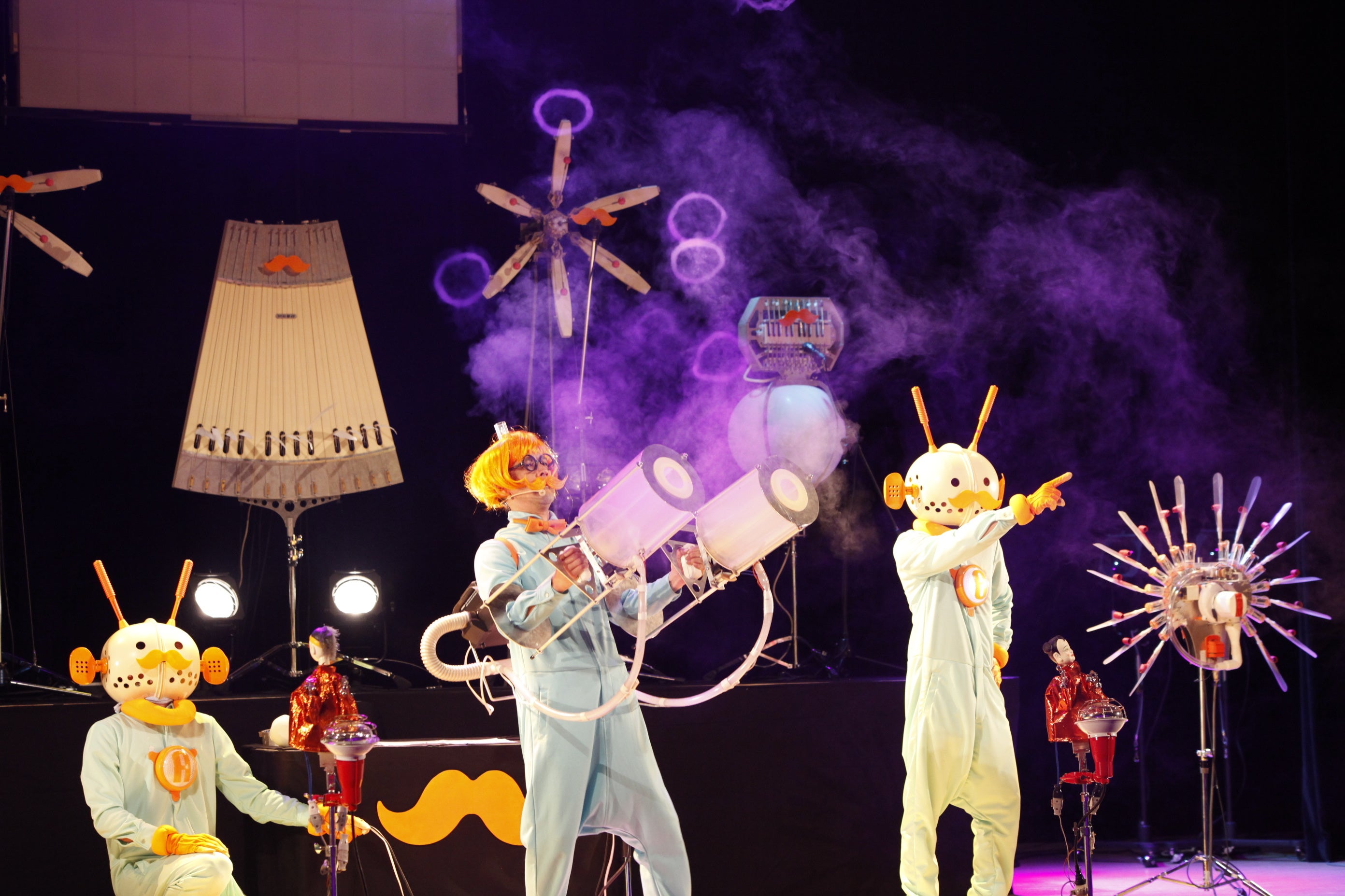 明和電機社⻑が演じる「ヒゲ博⼠」が、助⼿のボール星⼈と⼀緒に、ナンセンスな発明マシーンをつぎつぎに紹介するこども向けのミュージカル。