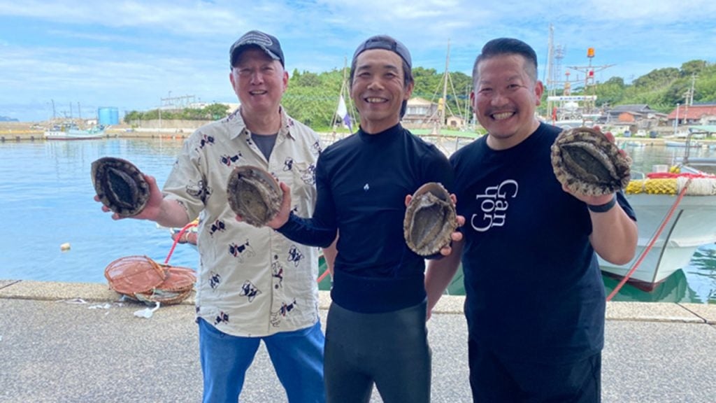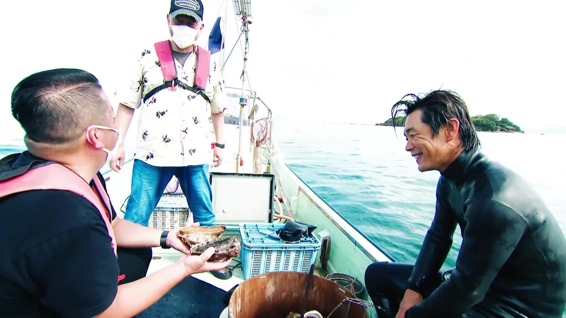 お二人は 小倉から船に乗り、藍島で伝説の漁師に食材調達を依頼する。