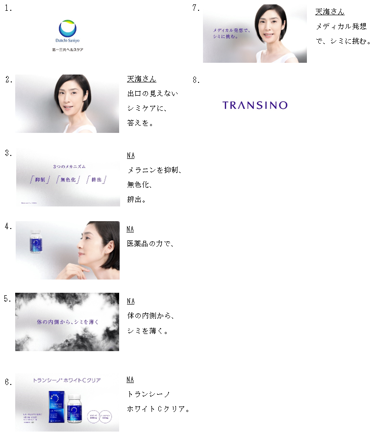 「トランシーノ」ブランドサイト:https://www.daiichisankyo-hc.co.jp/site_transino/ ※CMギャラリーぺージは3月15日9時以降に更新されます。
