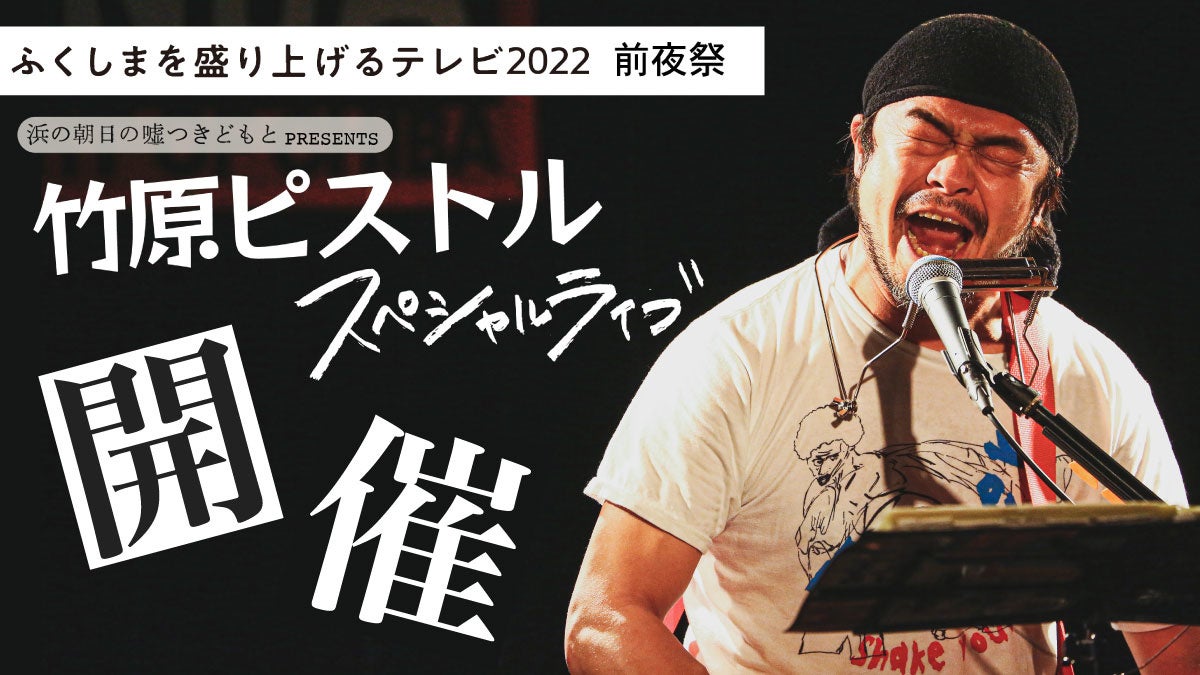 日本民間放送連盟賞・2021年番組部門テレビドラマ番組の最優秀賞を受賞した福島発ローカルドラマ「浜の朝日の嘘つきどもと」(福島中央テレビ制作)で主演を務めた竹原ピストルのスペシャルライブをYouTube配信します。数々の番組やCMのテーマソングを手掛ける竹原ピストル。「ふくしまを盛り上げるテレビ2022」の前夜祭となる魂のライブはアーカイブなし!必見です!