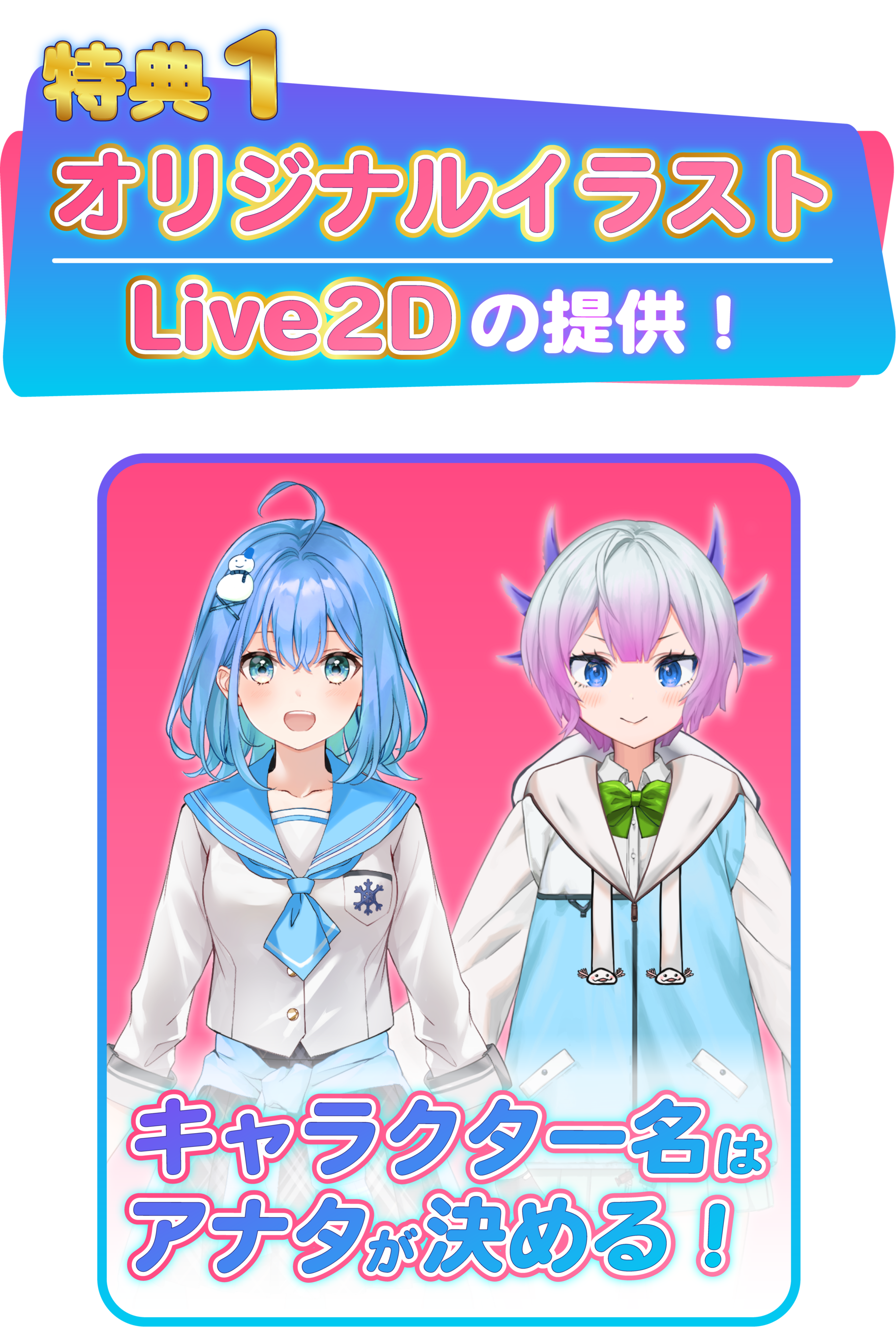 勝者2名にはイラスト・Live2D・ゲーミングPCなど、今後バーチャルで活動していくために必要なセットをプレゼント!