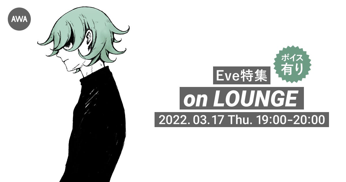 今回のイベントはニューアルバム『廻人』のリリースを記念して開催されるもので、アルバム収録曲やここでしか聴けないスペシャルボイスも一挙オンエアいたします。また、本イベント後半にはユーザーからのリクエストも受け付けます。LOUNGEは、どなたでも参加することができ、AWAアプリを事前にダウンロードしていれば、リクエスト等、よりお楽しみいただけます。ぜひ、Eve特集LOUNGEをお楽しみください。
