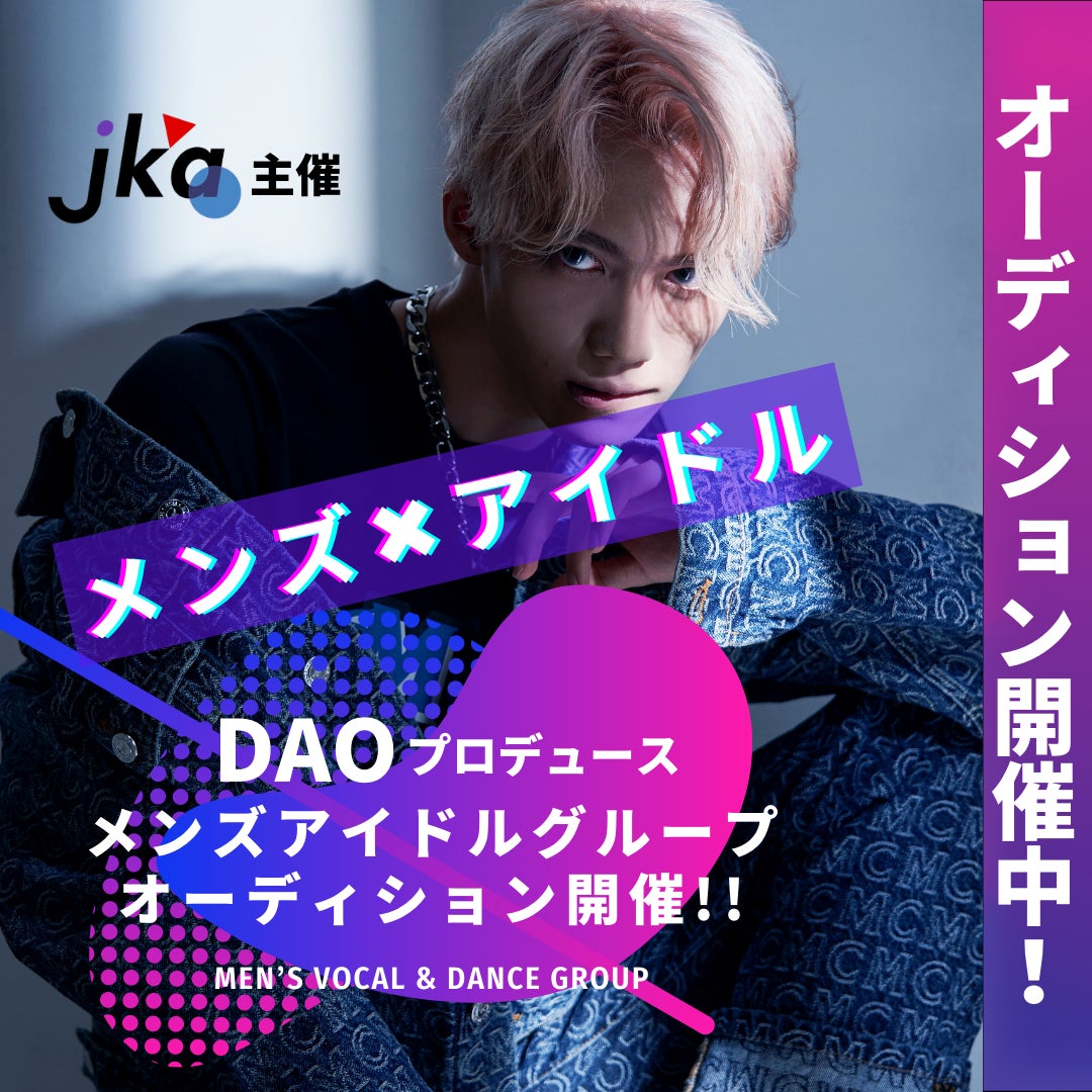 JKA株式会社(所在地:東京都渋谷区 代表:二宮史朗)はXOXなどで活躍し、現在はソロプロジェクトを立ち上げているDAOがプロデュースするメンズグループのオーディションを開催する。