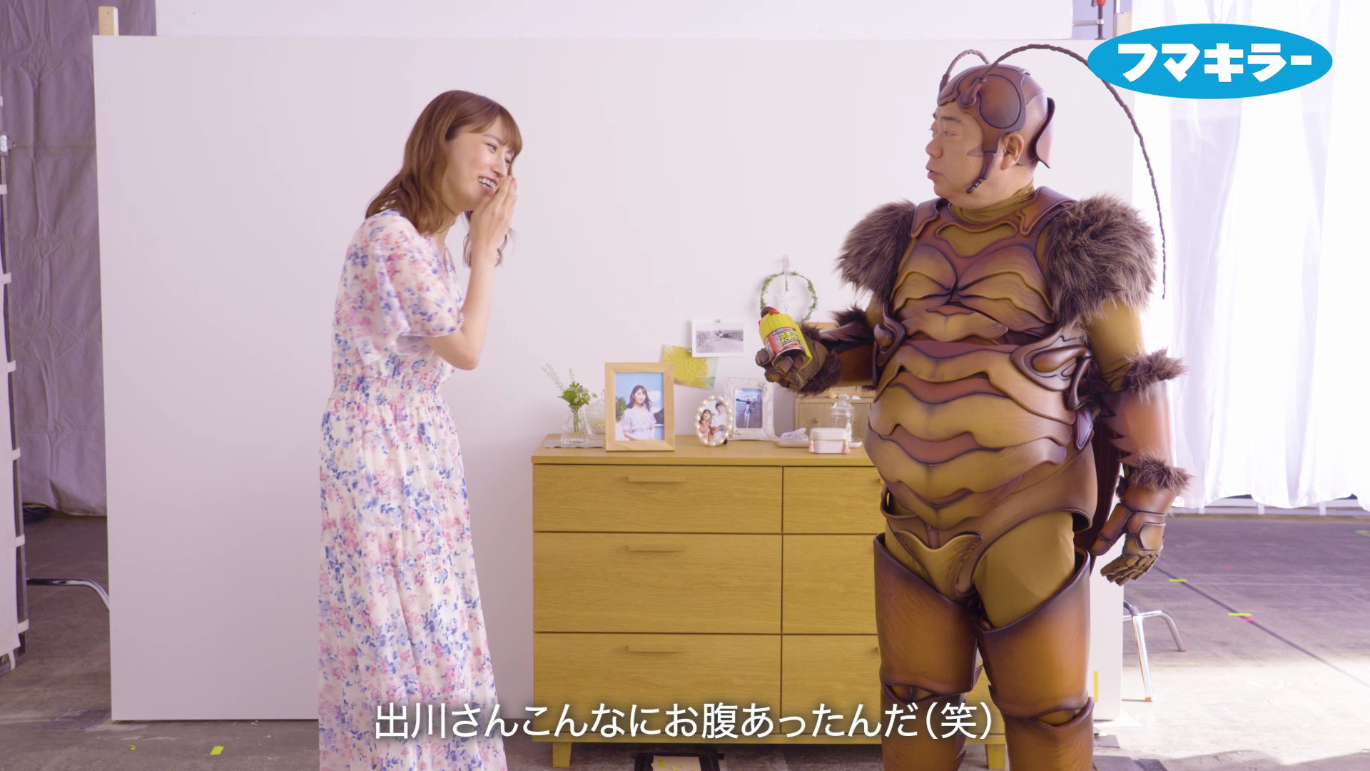 また、撮影後のインタビューで、“フマキラー”にかけて何キラーが問われた際、自身のことを「リアクションキラー!」と自信満々に力説されたのですが、インタビュー後にスタッフから「リアクションキラーってリアクションを殺すって意味になりますよ?」と的確なツッコミが入り、「え~~~~っ、途中で言ってよ~~!恥ずかしい。」と泣き崩れ、撮影現場全体が大爆笑の渦に包まれました。
