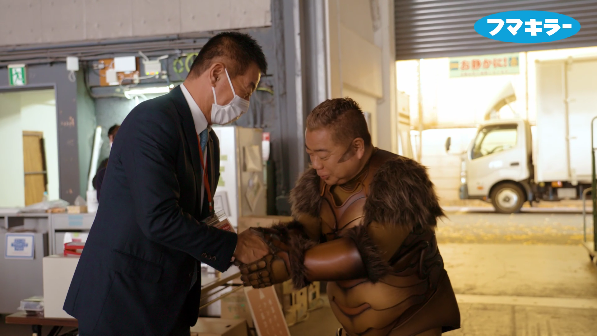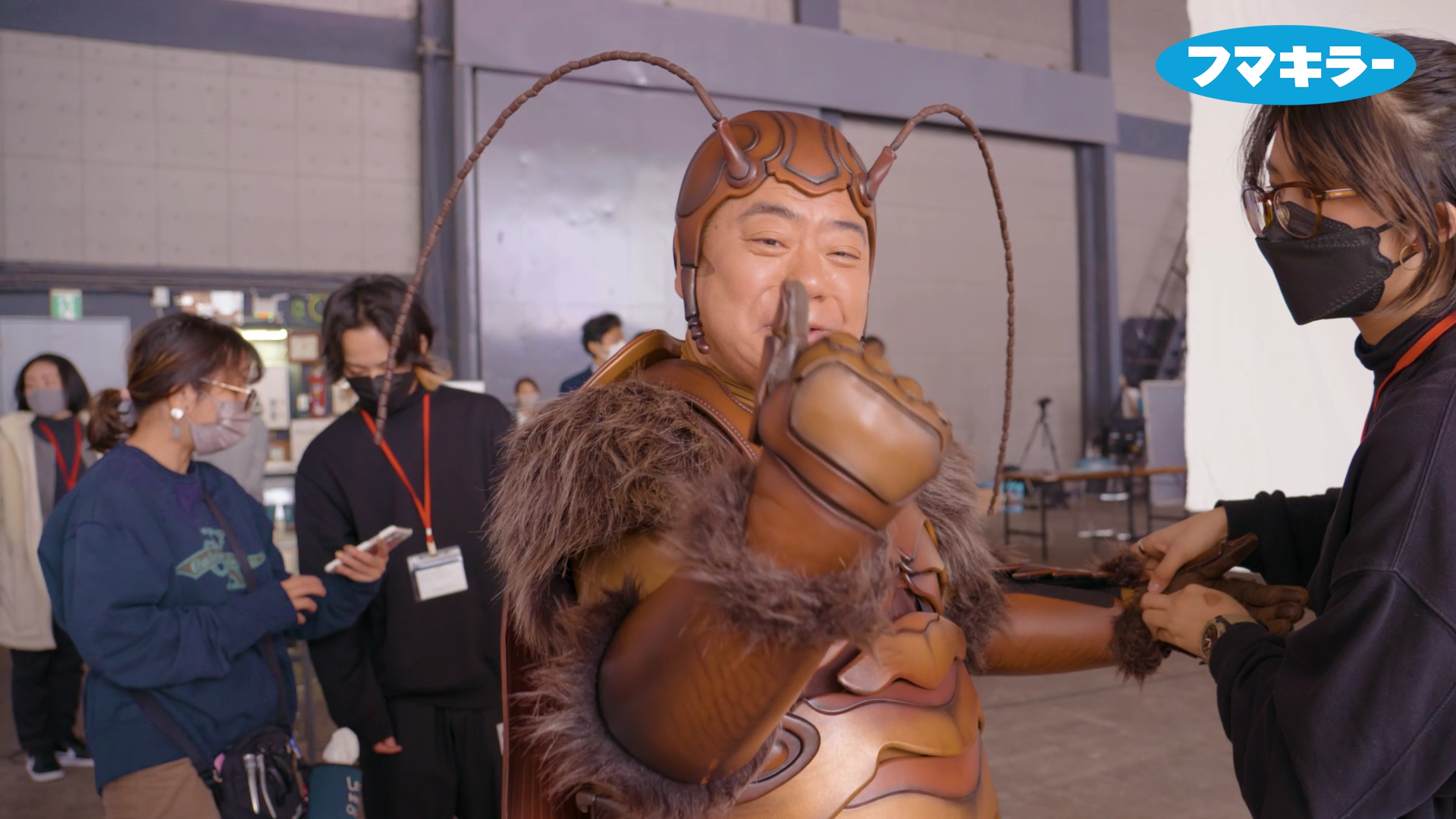 ゴキブリ姿で撮影現場入りされた出川さん。副社長が「また宜しくお願いします!」と出迎え、固い握手を交わしました。監督からCMの内容を説明されると「奥さんにヤラれるんですか(笑)」と苦笑い。出川さんが「前回の撮影の時、衣装が予想以上にリアル過ぎて苦情来ないかなと心配だったんですが大丈夫でした?」と質問すると、監督が「いえいえ、逆に好感度高かったんです!」と笑顔で即答され、「逆にこのリアルさが良かったのかなぁ~」と、驚きつつも、なんだか嬉しそうな表情を浮かべながらCM撮影に臨まれました。