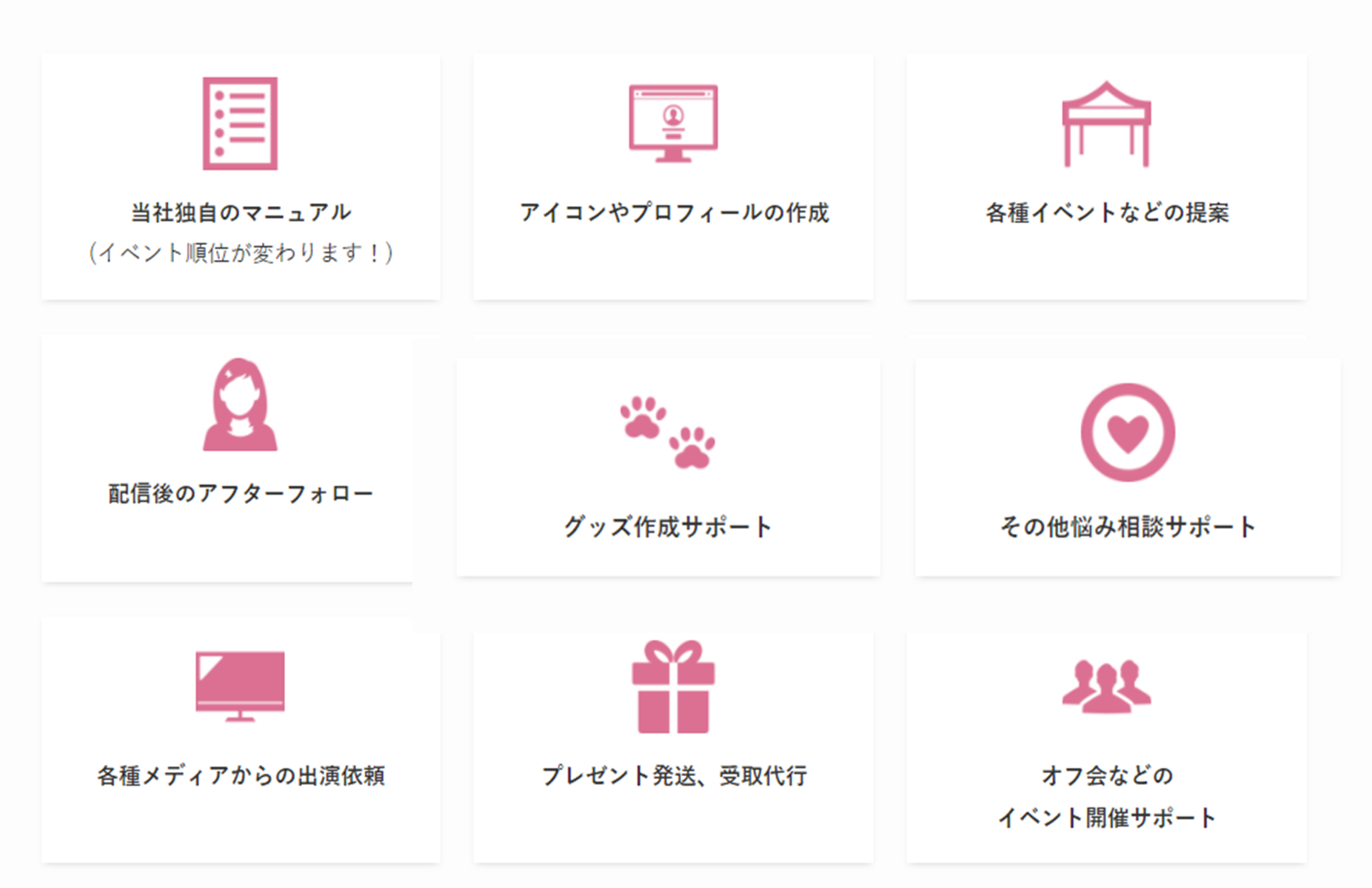 実際にライバーの活動支援を例に挙げると、まず初めに数多くのライバーの中から自身を選んでもらうのに最適なアイコンやプロフィールの作成をサポート、また各プラットフォームごとの効果的な配信方法や企画のサポート、さらにはライバーやリスナーとのコニュニケーションの取り方や他SNSとの連携などを含めて、包括的にマネジメントします。所属するクリエイターは今後オープンする独自の多機能プラットフォームでも活動を行えます。
