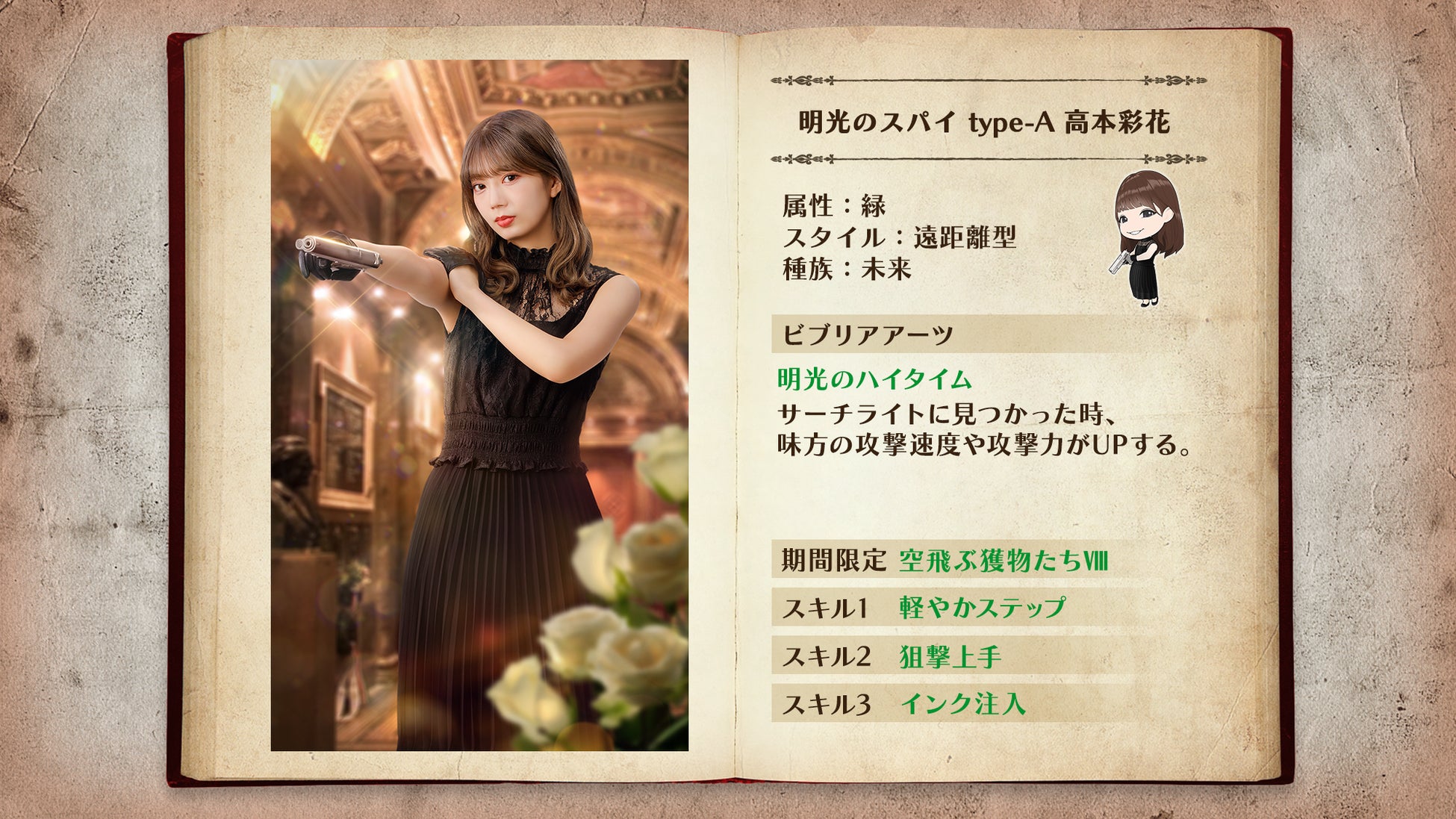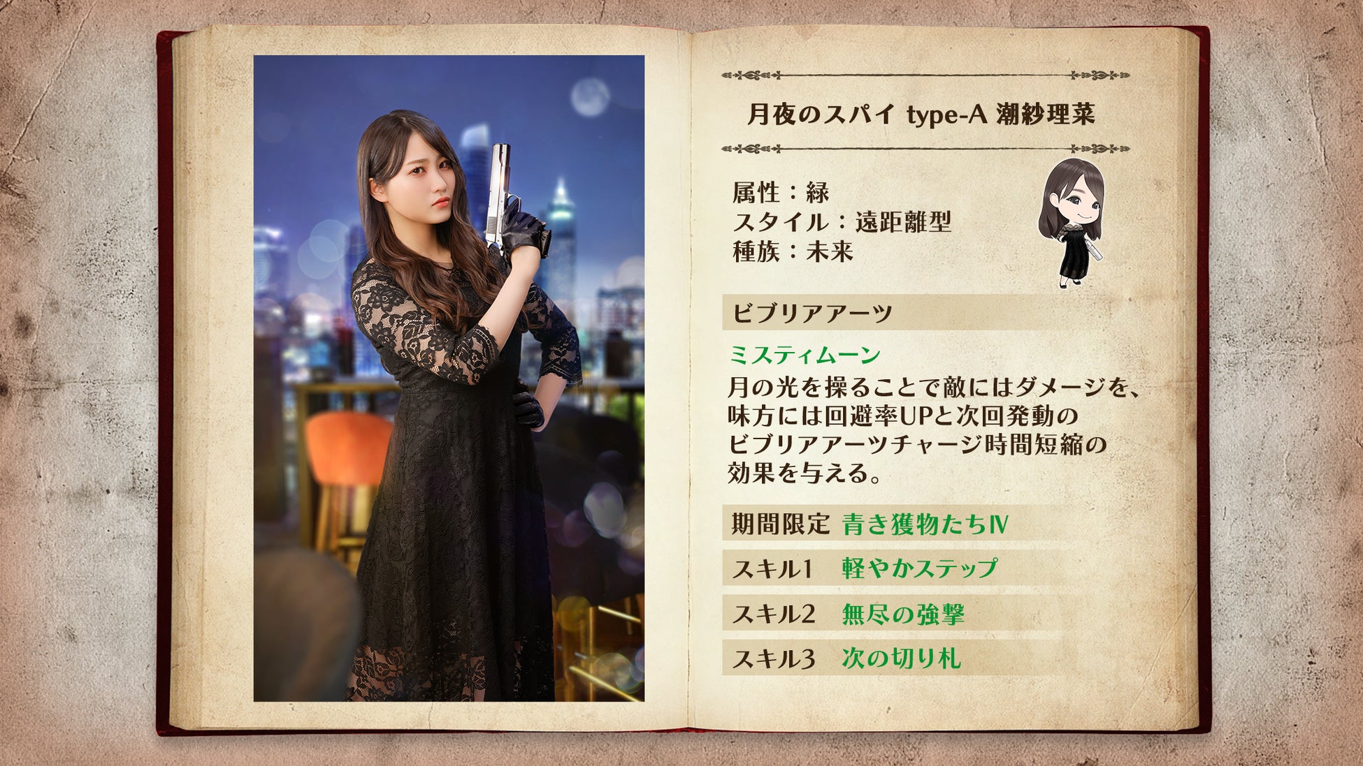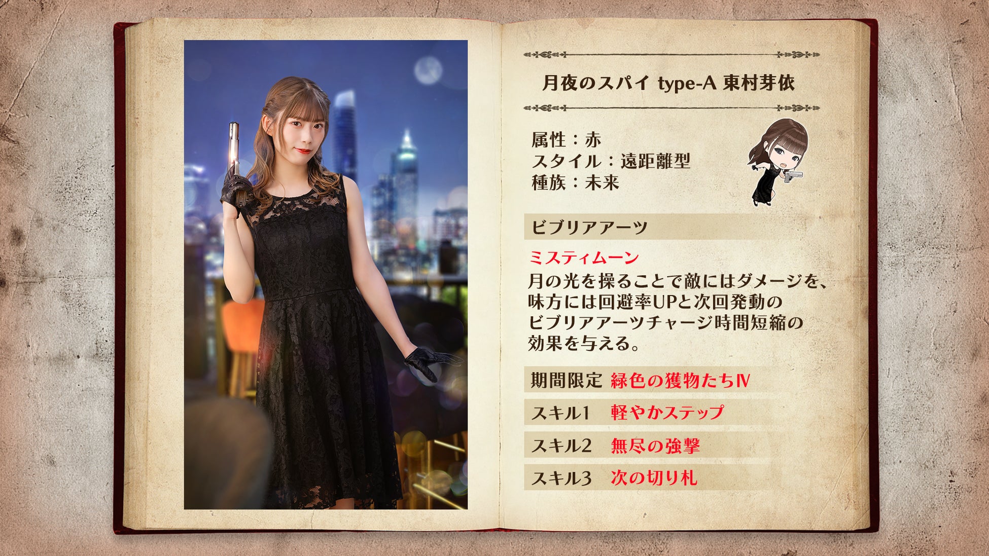 「★4 明光のスパイ」は味方の攻撃速度と攻撃力をUPさせるビブリアアーツ「明光のハイタイム」を、「★4 月夜のスパイ」は味方のビブリアアーツチャージの時間を短縮させるビブリアアーツ「ミスティムーン」を所持しています!
