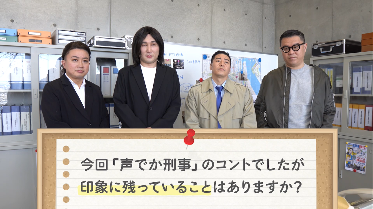 Q:今回「声でか刑事」のコントでしたが、撮影中印象に残っているエピソードはありますか?