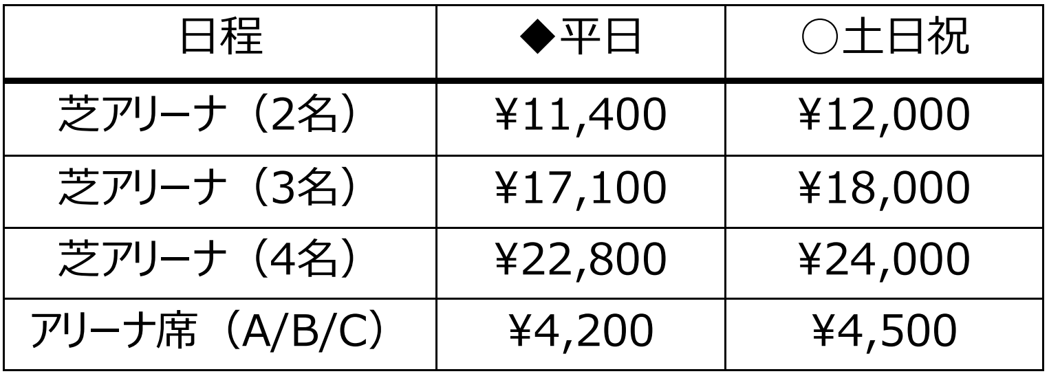 ※芝アリーナは特典付きチケットです。特典は当日会場でお受け取りください。