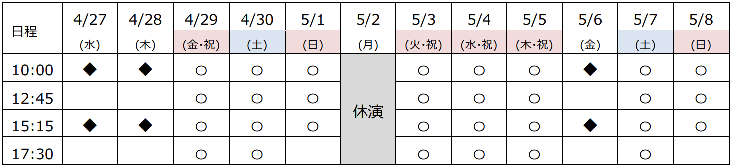 【開催期間】 2022年4月27日(水)~5月8日(日) ※全36公演