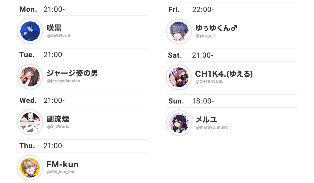 ※配信時間は変更される可能性があります/配信者のTwitter等をチェックしてください